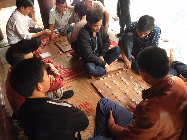 Hội làng cũng là dịp để mọi người dừng mọi công việc bận rộn, gặp gỡ trò chuyện, chơi với nhau vài ván cờ vui.