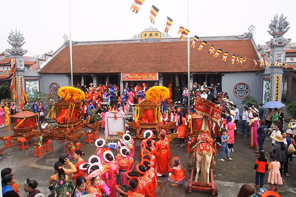 Đoàn rước sẽ đi từ đình ra chùa và đi qua các ngõ lớn trong làng. Ảnh: Thân Văn Cơ