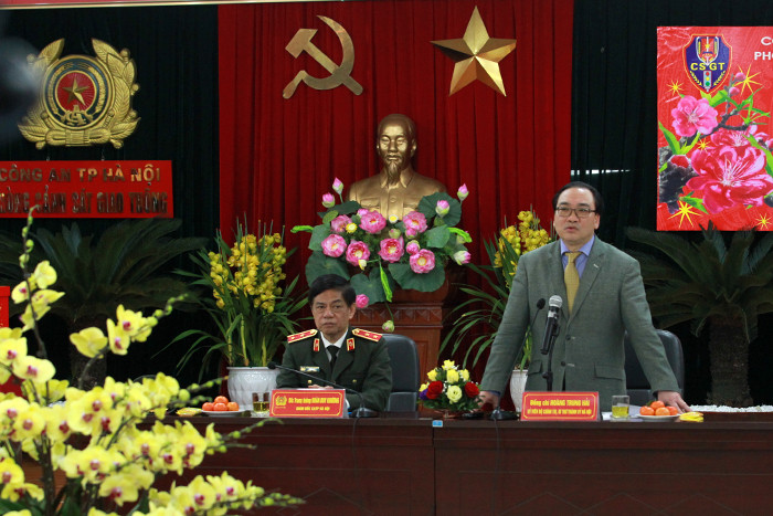 Thay mặt Đảng ủy, Ban Giám đốc CATP Hà Nội, Phòng CSGT, Trung tướng Đoàn Duy Khương, Giám đốc CATP Hà Nội bày tỏ niềm vui mừng, vinh dự khi được đón đồng chí Bí thư cùng các thành viên trong đoàn công tác; đồng thời hứa CATP Hà Nội nói chung và lực lượng CSGT Thủ đô nói riêng luôn nỗ lực phấn đấu vượt qua mọi khó khăn để hoàn thành xuất sắc nhiệm vụ mà Đảng bộ, chính quyền và nhân dân Thủ đô tin tưởng giao phó; đảm bảo tuyệt đối bình yên trước, trong và sau Tết cho nhân dân đón xuân...