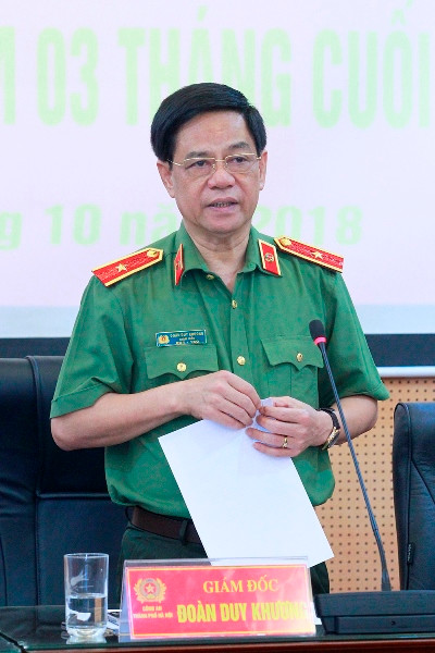 Thay mặt Đảng uỷ, Ban Giám đốc CATP, Thiếu tướng Đoàn Duy Khương ghi nhận, đánh giá cao và nhiệt liệt biểu dương tinh thần nỗ lực, cố gắng và chúc mừng những thành tích, kết quả đạt được của Công an các đơn vị trong Quý III-2018.