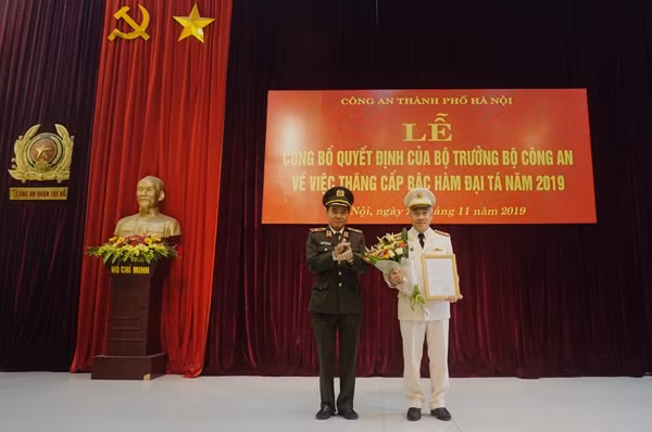 Cũng tại buổi làm việc, Thiếu tướng Nguyễn Anh Tuấn đã trao Quyết định của Bộ trưởng Bộ Công an về việc thăng cấp bậc hàm từ Thượng tá lên Đại tá đối với đồng chí Mai Trọng Thắng, Trưởng Công an quận Tây Hồ.