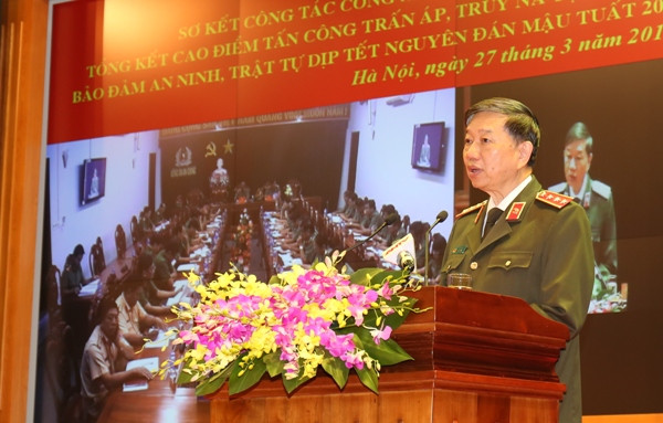 Chỉ đạo một số nhiệm vụ trọng tâm cần thực hiện trong thời gian tới, Bộ trưởng Tô Lâm đề nghị, Công an các đơn vị, địa phương phát huy kết quả đã đạt được, tiếp tục triển khai thực hiện nghiêm túc, có hiệu quả các chủ trương của Trung ương Đảng, Quốc hội, Chính phủ; mệnh lệnh chỉ đạo của lãnh đạo Bộ. Chủ động nắm chắc tình hình, tập trung lực lượng triển khai thực hiện có hiệu quả các kế hoạch, các phương án bảo đảm ANTT trên từng địa bàn; giải quyết kịp thời các vấn đề phức tạp nảy sinh, không để bị động, bất ngờ. Tổ chức sơ kết, đánh giá các nhiệm vụ công tác trọng tâm đã đặt ra trong quý I/2018; triển khai có hiệu quả các nhiệm vụ công tác trọng tâm trong tháng 4 và quý II/2018.
