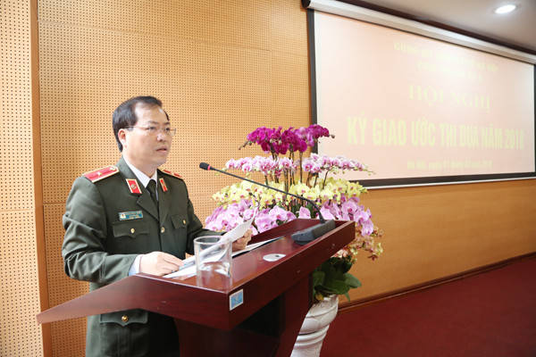 Chỉ huy các đơn vị trong Cụm thi đua số 4 CATP Hà Nội ký giao ước thi đua