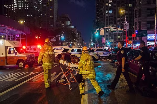 Cảnh sát và lính cứu hỏa tại hiện trường vụ nổ ở Manhattan