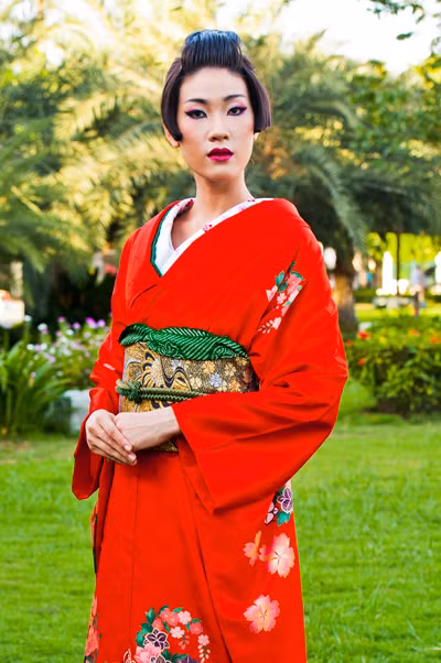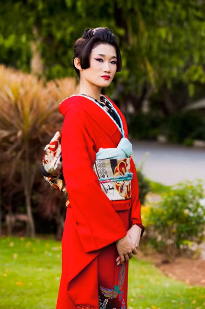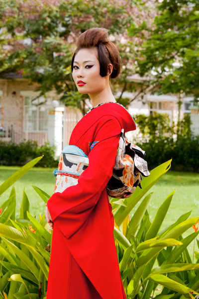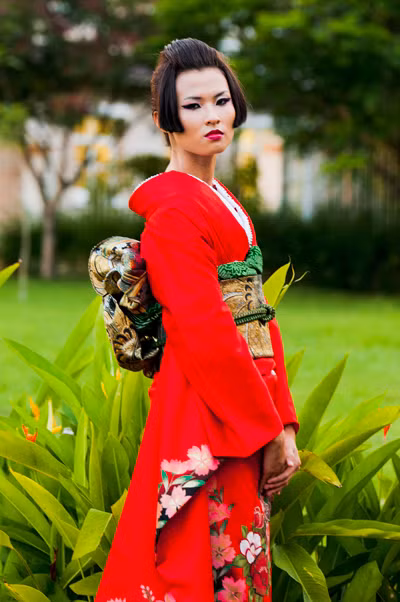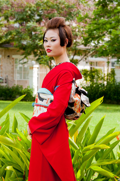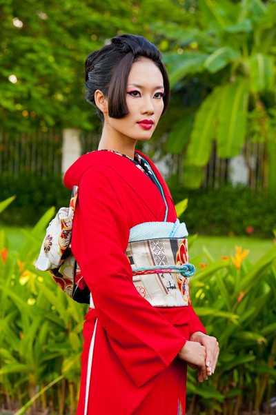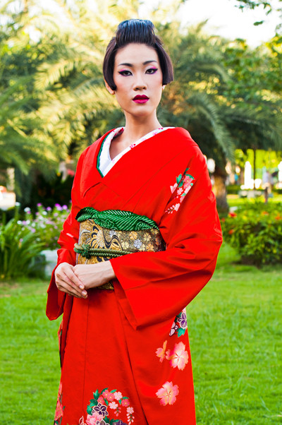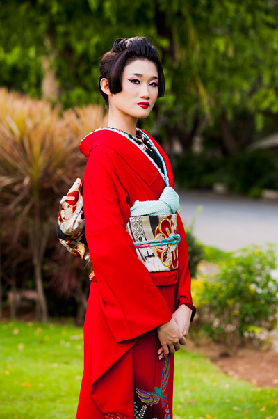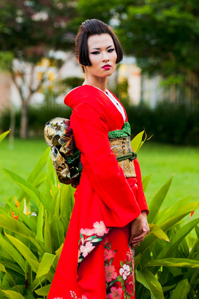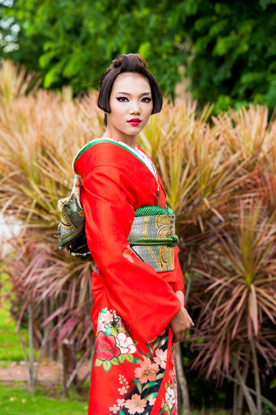 Hình ảnh các thí sinh hóa thân thành phụ nữ Nhật Bản trong vai trò người mẫu quảng cáo: