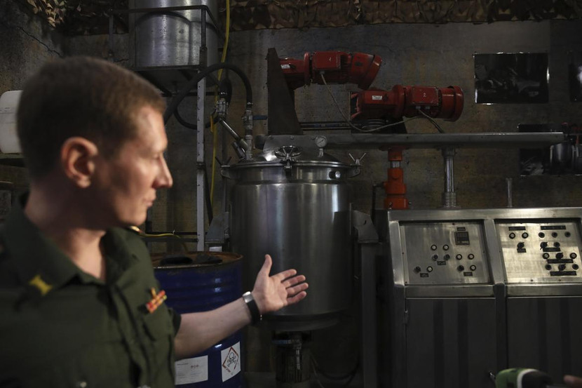 Một quan chức Nga giới thiệu phòng thí nghiệm được phiến quân sử dụng để sản xuất khí gas tại cuộc họp báo do Bộ Quốc phòng và Bộ Ngoại giao Nga tổ chức ngày 22-6-2018