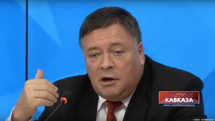 Phó Chủ tịch thứ nhất Ủy ban Kinh tế Hội đồng Liên bang Nga Sergei Kalashnikov phát biểu với báo giới