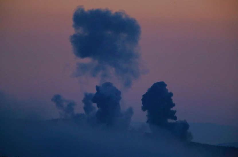 Những đám mây khói bay lên từ bên trong Syria do các đợt tấn công nhìn từ ngoại ô thị trấn biên giới Kilis, Thổ Nhĩ Kỳ ngày 20/1/2018