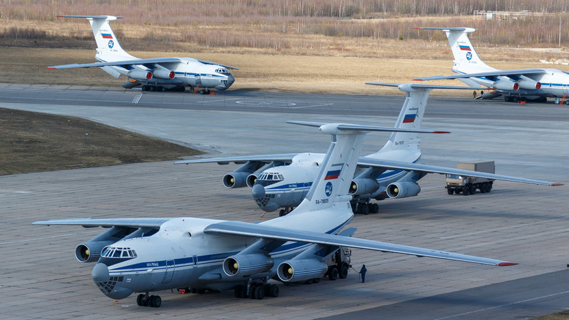 Matxcơva đã huy động 9 máy bay chở hàng viện trợ khẩn cấp tới Italia. Việc này được triển khai theo lệnh của Tổng thống Vladimir Putin sau khi ông có cuộc điện đàm với Thủ tướng Italia Giuseppe Conte hôm 21-3.