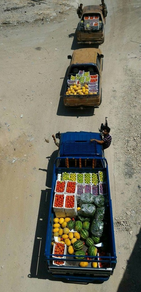 Xe hỗ trợ thực phẩm của lực lượng nổi dậy bên ngoài vòng vây