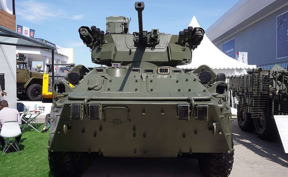 ANTD.VN - Nga vừa cho ra mắt biến thể thiết giáp BTR-82A với việc trang bị tháp pháo tự động Ballista bao gồm một pháo 30mm và tên lửa chống tăng Konkurs 9M113M, cùng với đó một giáp lồng mới cũng được bọc xung quanh xe nhằm tăng khả năng sống sót trong chiến đấu.