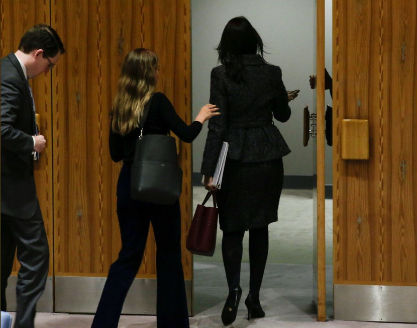 Bà Nikki Haley bước ra khỏi phòng Hội đồng Bảo an sau cuộc bỏ phiếu