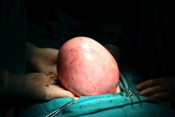 Theo đó, khoảng một năm nay, chị M. mỗi khi đến kỳ kinh thường bị rong kinh kéo dài kèm ra máu nhiều. Chị M. luôn cảm thấy trong người mệt mỏi, da dẻ xanh xao nên nhưng tới cuối tháng 3 vừa qua chị mới đi khám bệnh. Tại phòng khám, sau khi chụp CT- Scanner, các bác sĩ phát hiện trong ổ bụng của bệnh nhân có khối u to với kích thước trên 20cm, nghi ngờ u xơ tử cung. Hình ảnh khối u to vượt quá màn hình siêu âm kèm tình trạng thiếu máu nặng.