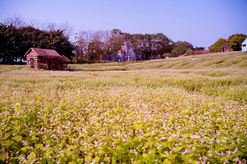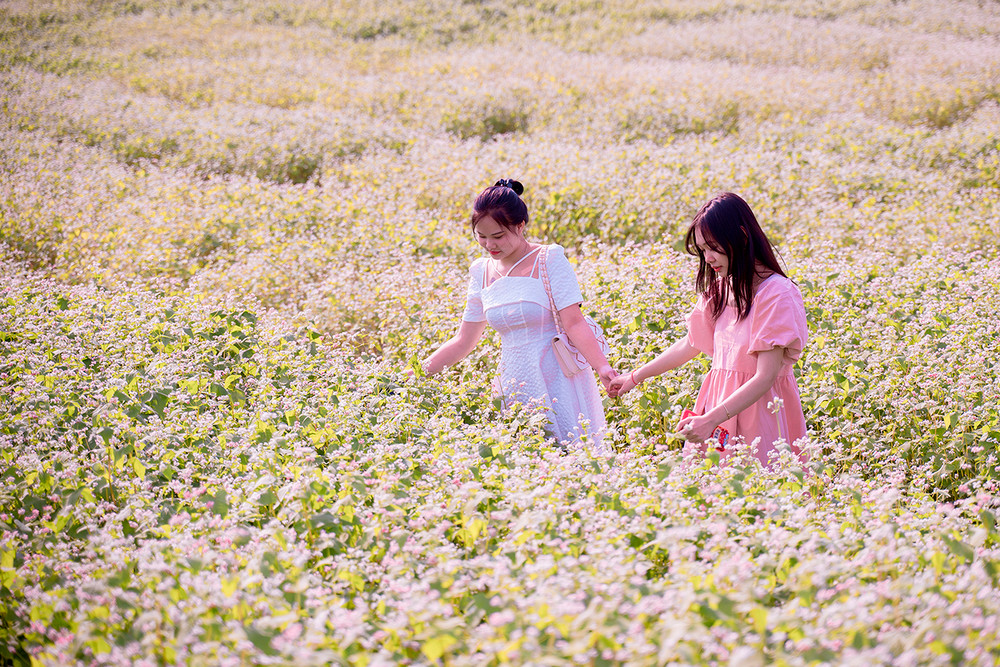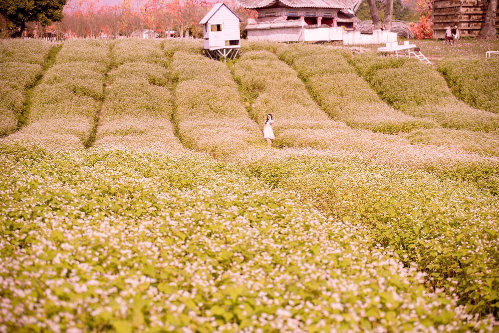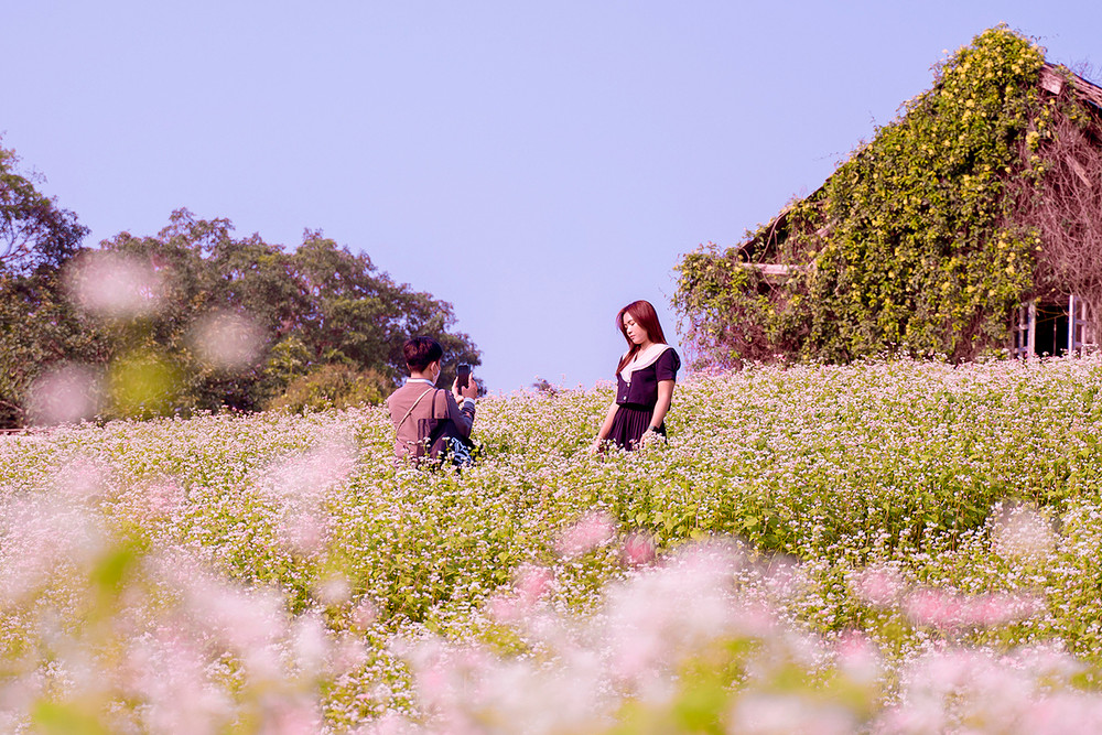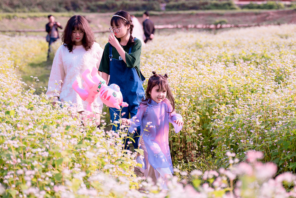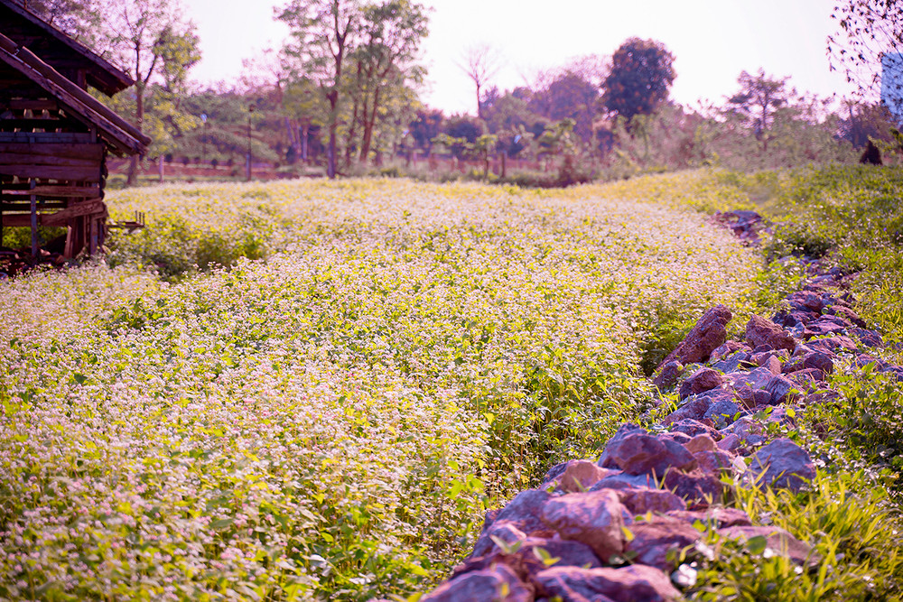 ANTD.VN - Cánh đồng hoa tam giác mạch rộng hơn 1 hecta (10.000 m2) tại Thảo nguyên hoa (Long Biên, Hà Nội), thu hút được đông đảo du khách tới tham quan trong những ngày qua. Được trồng trên một triền đồi cùng cách bài trí xen lẫn đá xám, nhà gỗ nên quang cảnh khá giống với Cao nguyên đá Đồng Văn (Hà Giang).
