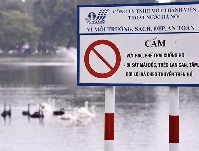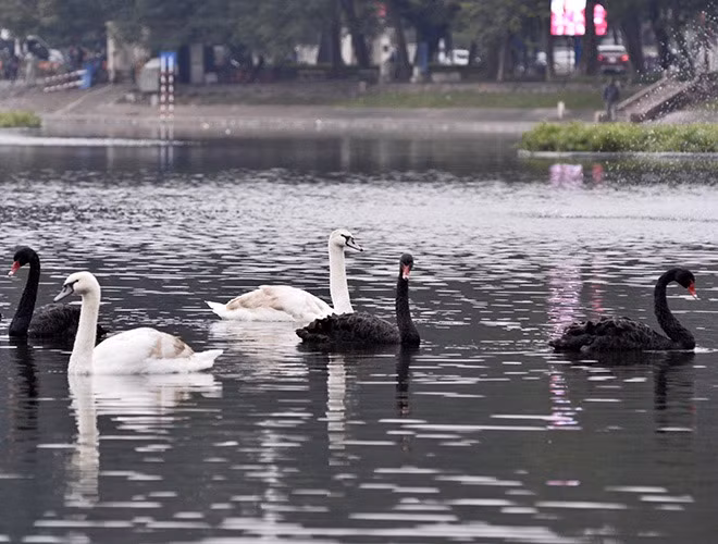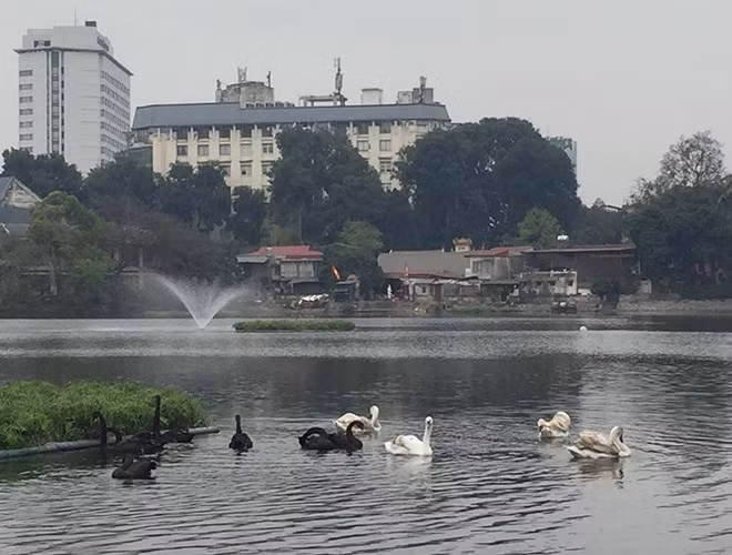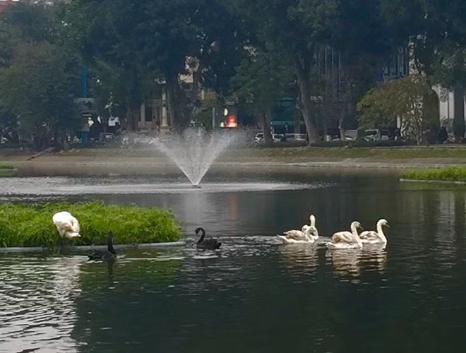 Bất ngờ ngắm đàn thiên nga bơi lội giữa hồ Hoàn Kiếm