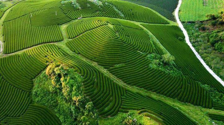 Ngắm đồi chè Mộc Châu từ “mắt đại bàng”