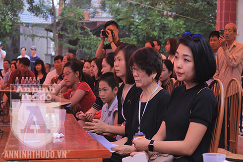 Vừa nói, vừa chỉ tay lên sâu khấu, chị nói thêm: “Chính là hình giò lan màu tím nằm phía dưới hình ảnh chú Trí là giò lan kỉ vật sinh nhật của hai vợ chồng chú ấy”.