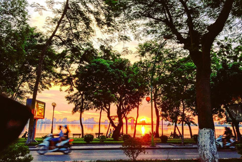 Còn buổi chiều tà, hãy chọn một ghế đá nào đó ven đường mà ngắm hoàng hôn. Mặt trời đỏ ối và rực rỡ chiếu trên mặt hồ. Nhìn kỹ thì chói lòa gay gắt nhưng là một khung cảnh hùng vĩ và vô cùng thi vị, trong khu vực nội thành, khó có địa điểm nào ngắm hoàng hôn ấn tượng hơn thế.