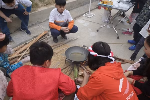 Ngắm học sinh Hà Nội trải nghiệm rán nem, nấu miến bằng bếp củi