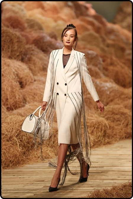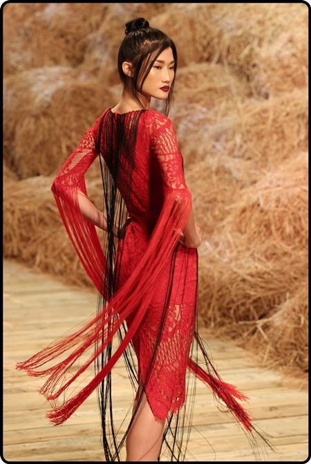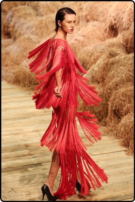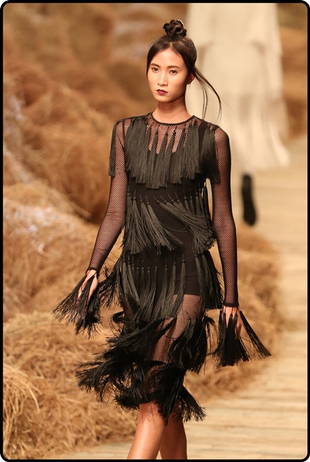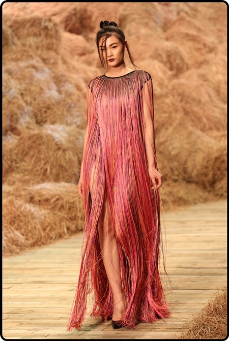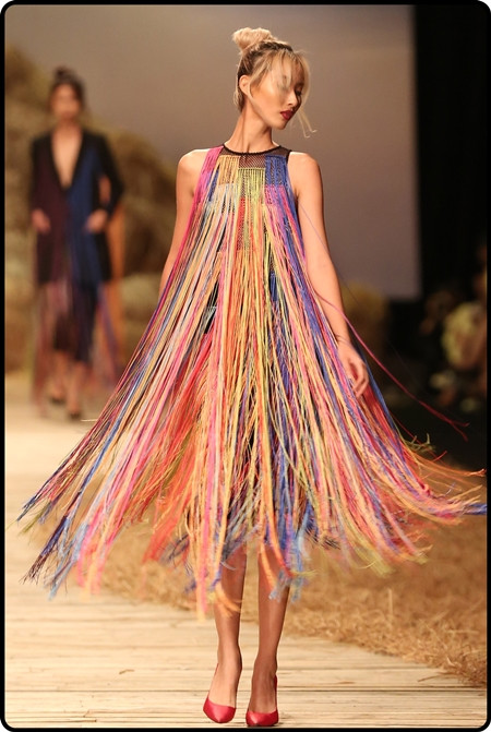 Tua rua là một trong những xu hướng lên ngôi trong mùa mốt 2016 này. Chúng luôn gây ấn tượng bởi vẻ ngoài mềm mại, quyến rũ. Tuy nhiên, đa phần tua rua chỉ được ứng dụng vào những món phụ kiện đời thường hơn là trang phục. Với tua rua, Đỗ Mạnh Cường đã thực hiện một chuyến hành trình ngược bởi trước nay chúng chỉ được nhìn thấy nhiều trên sân khấu biểu diễn hay thảm đỏ. Tuy nhiên, những thiết kế của Đỗ Mạnh Cường đã phá vỡ những mặc định này. Tua rua hoàn toàn có thể mang vào đời thực nếu có sự cân đo và tiết chế phù hợp.