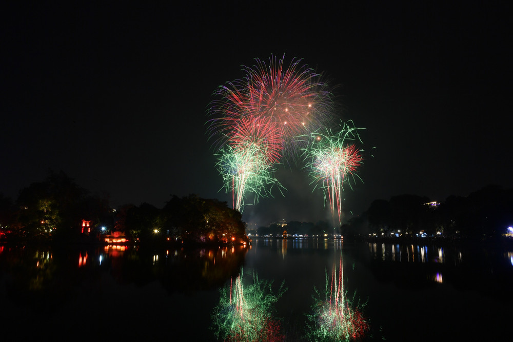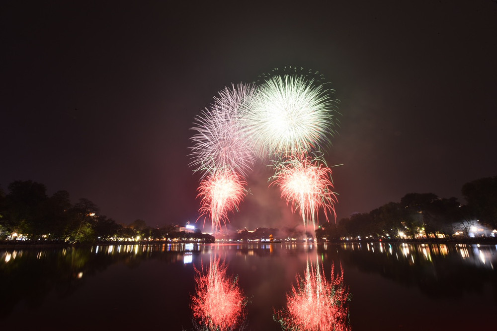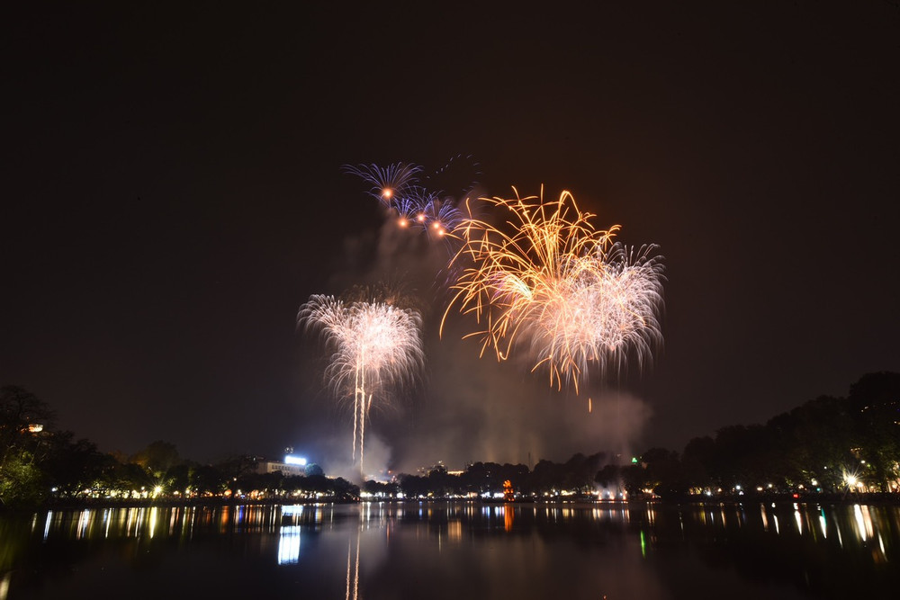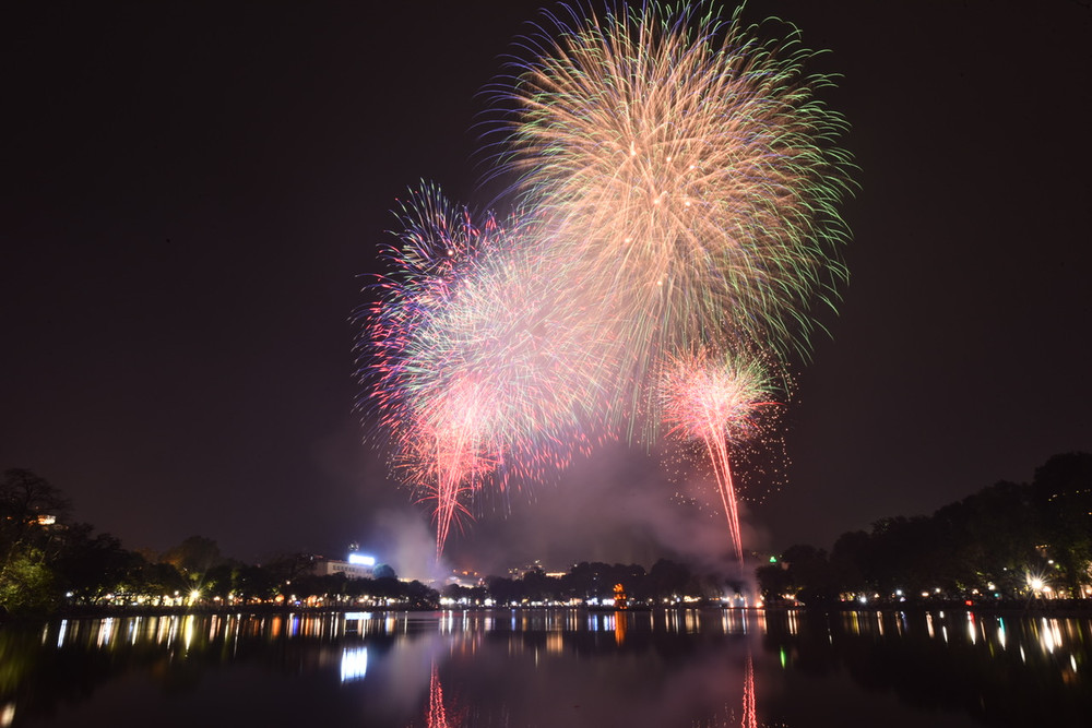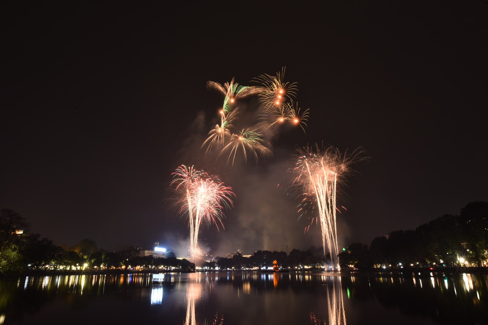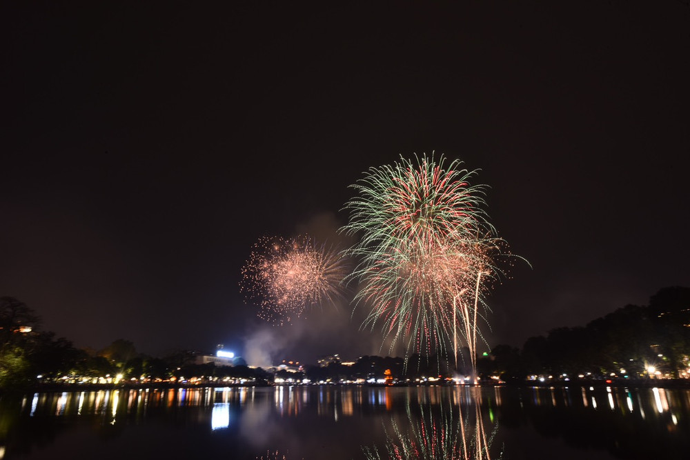Ngắm những màn pháo hoa lung linh sắc màu trong đêm giao thừa ở Hà Nội