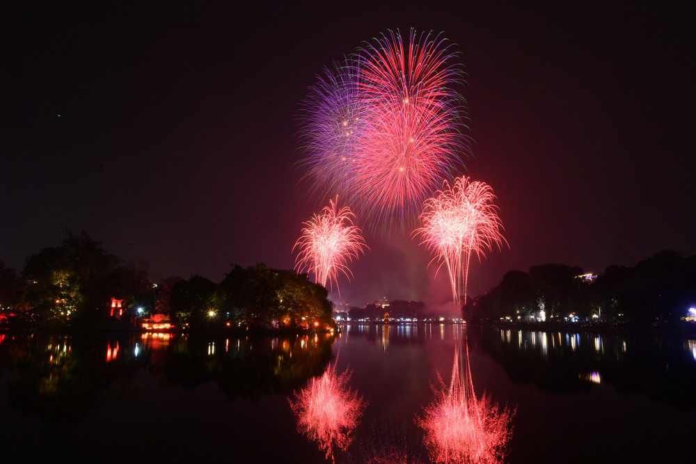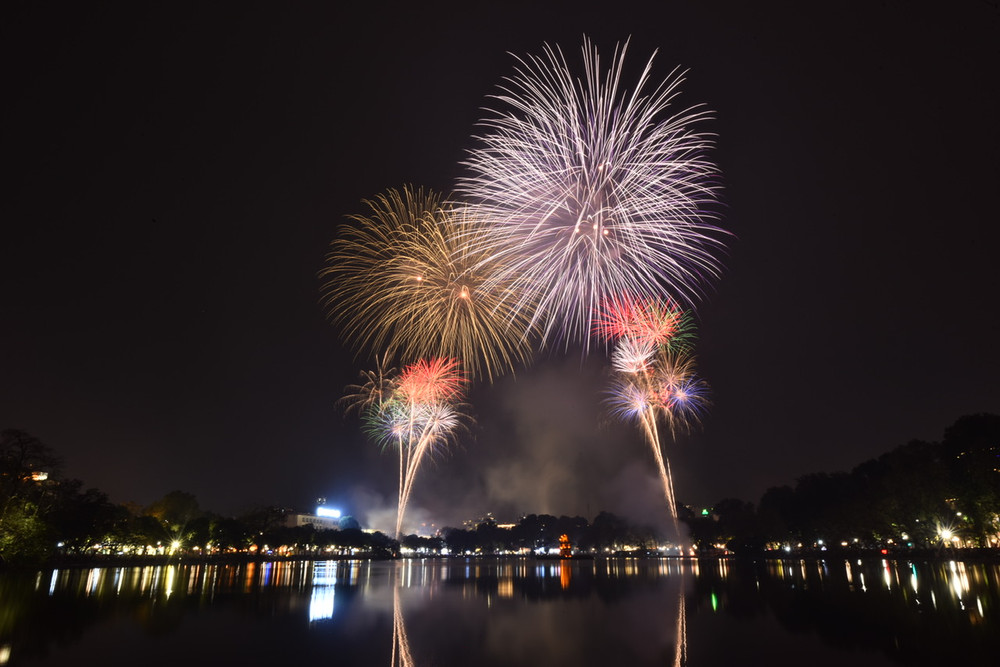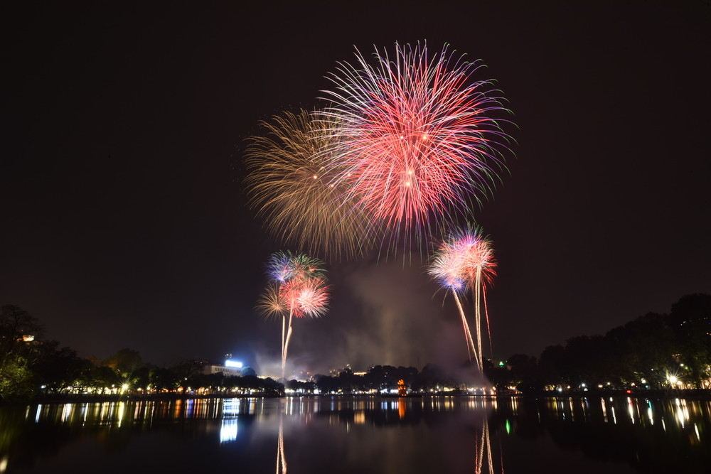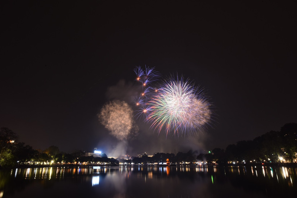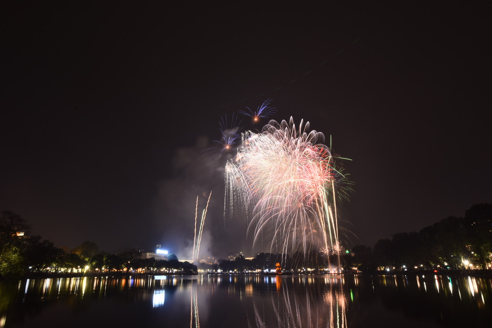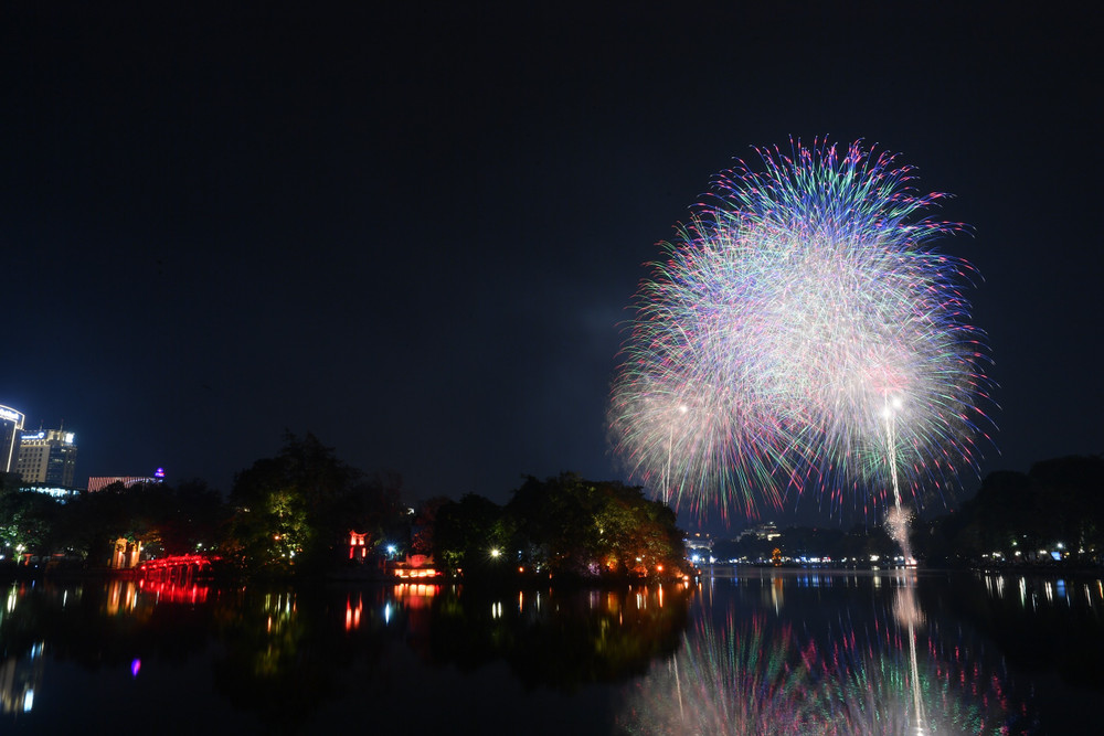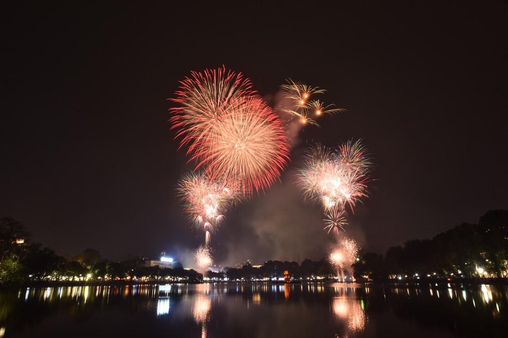 Ngắm những màn pháo hoa lung linh sắc màu trong đêm giao thừa ở Hà Nội