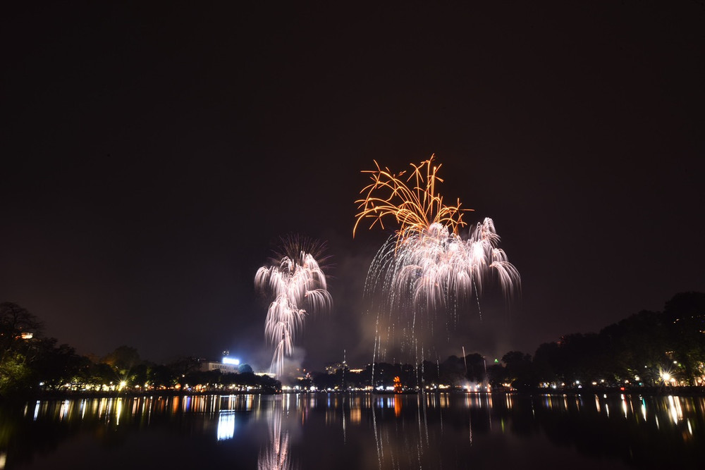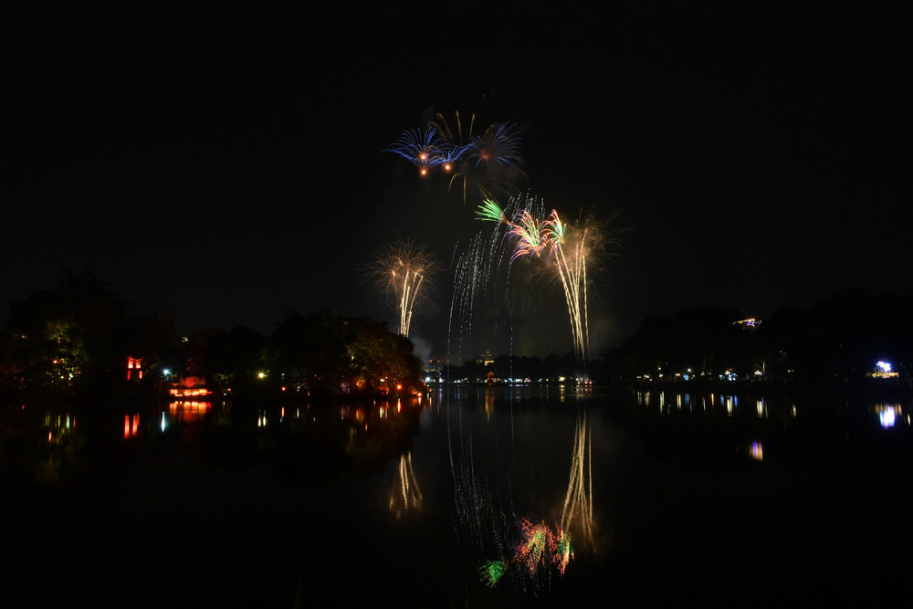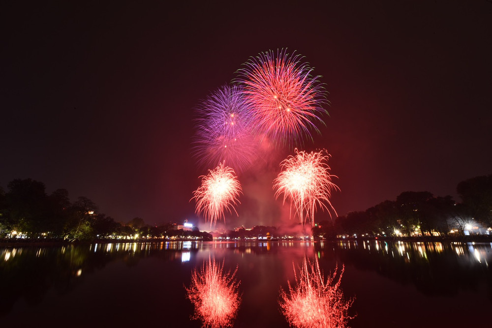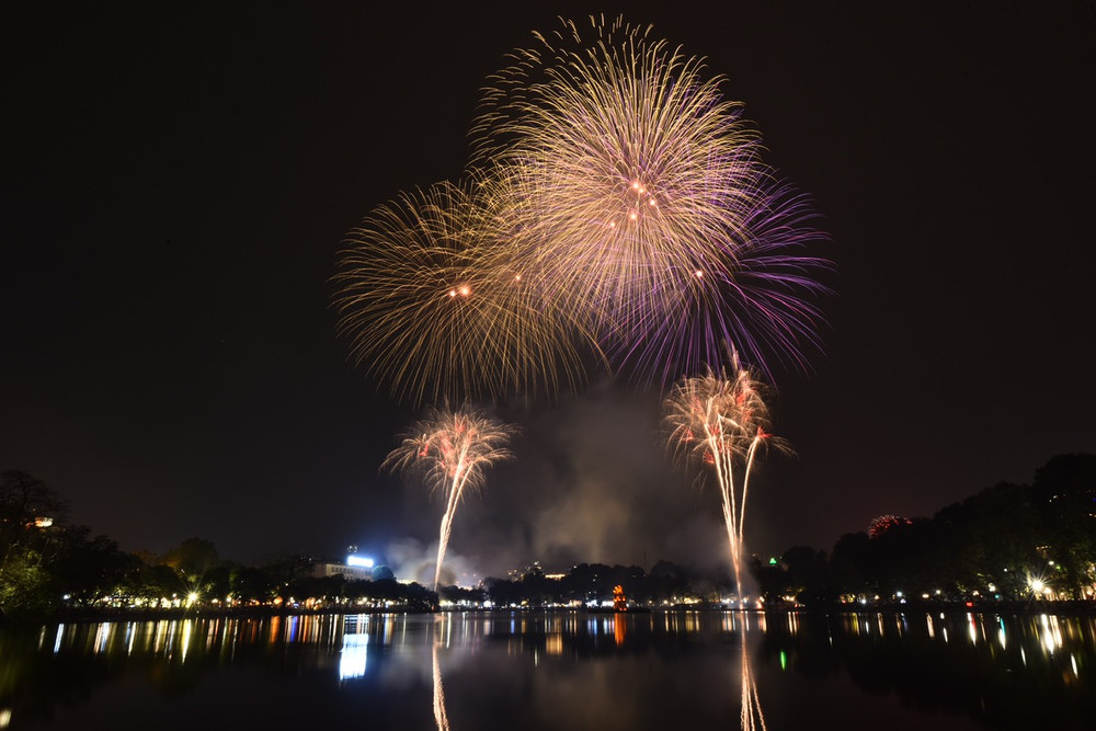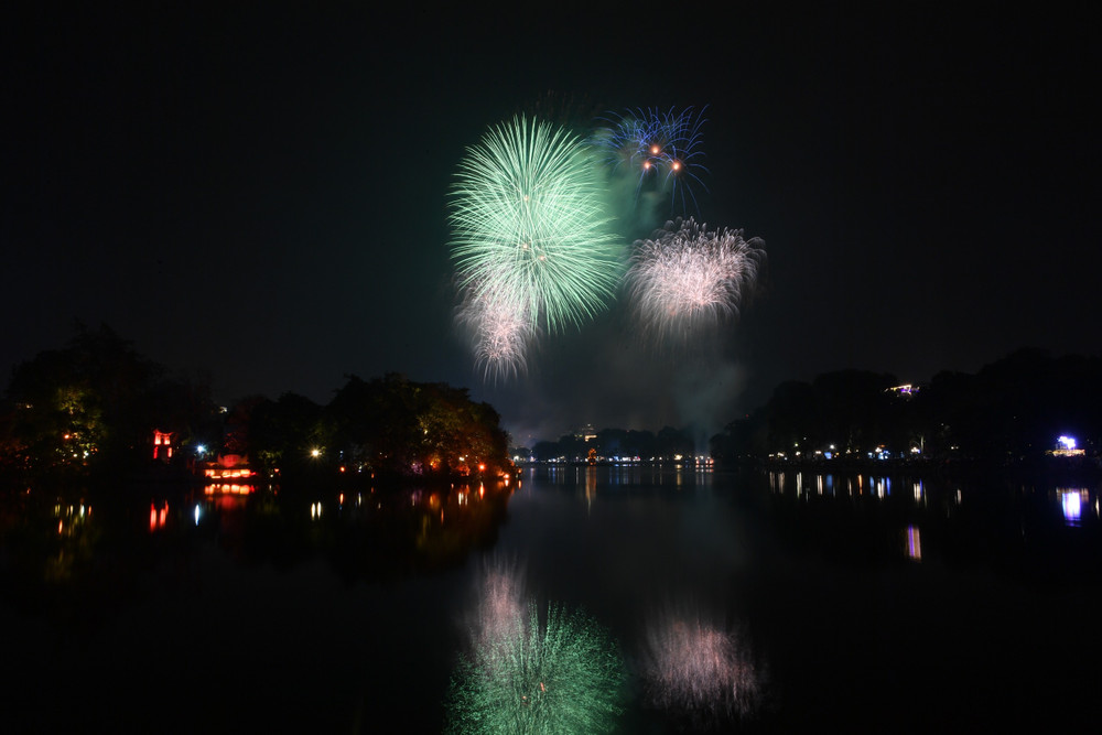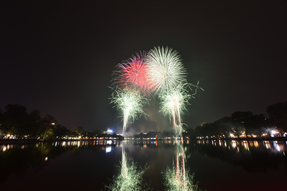 Ngắm những màn pháo hoa lung linh sắc màu trong đêm giao thừa ở Hà Nội