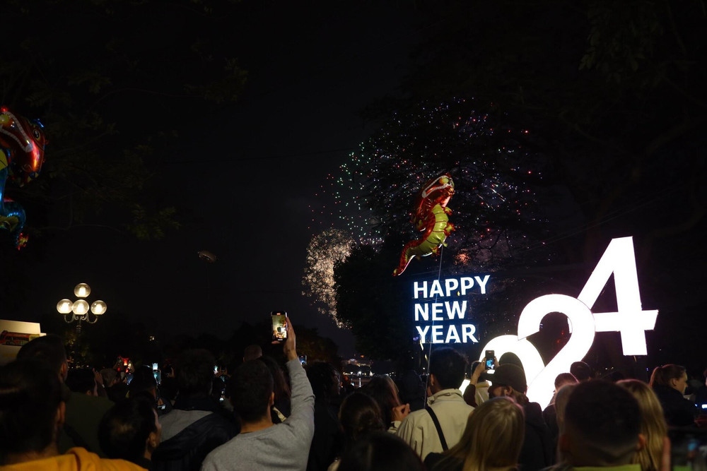 ANTD.VN - Đúng 0h ngày 10-2 (tức mùng 1 Tết Nguyên đán), người dân Thủ đô hân hoan chiêm ngưỡng màn pháo hoa rực rỡ ở Hồ Gươm, đánh dấu thời khắc chuyển giao năm cũ sang năm mới Giáp Thìn 2024.