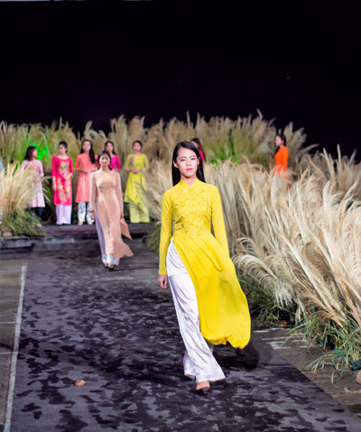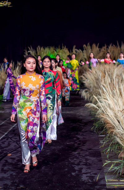 Qua gần 90 phút biểu diễn, các nữ sinh viên, những người mẫu không chuyên, đã giới thiệu trên 150 mẫu áo dài từ bộ sưu tập Chiffon in 3D kết hợp với thổ cẩm dân tộc Mông Mù Cang Chải của NTK Vũ Việt Hà; mẫu áo dài thêu tay trên chất liệu lụa truyền thống của NTK Thanh Thúy.