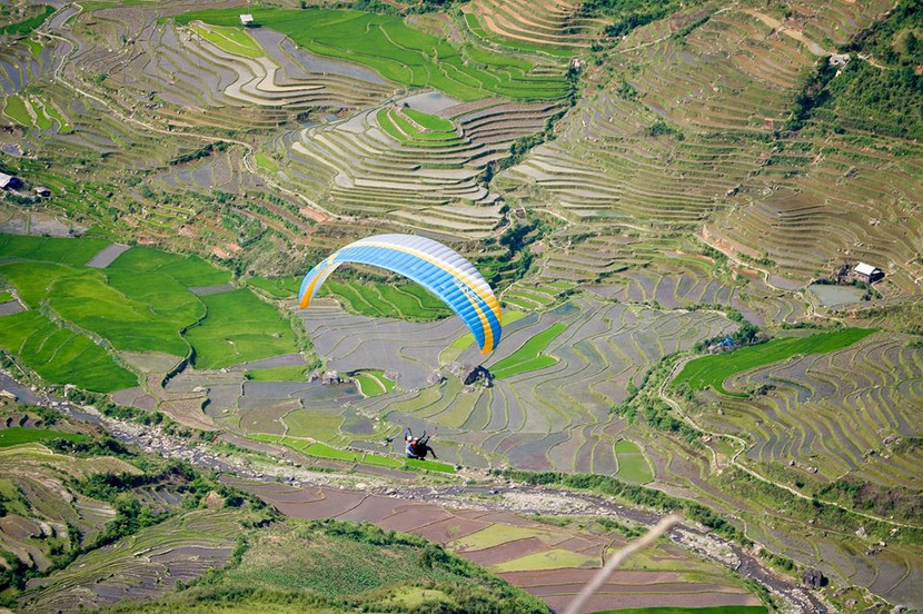 Sự kiện "Bay trên mùa nước đổ" đem đến cho du khách trải nghiệm ngắm ruộng bậc thang từ trên cao
