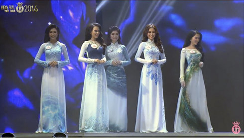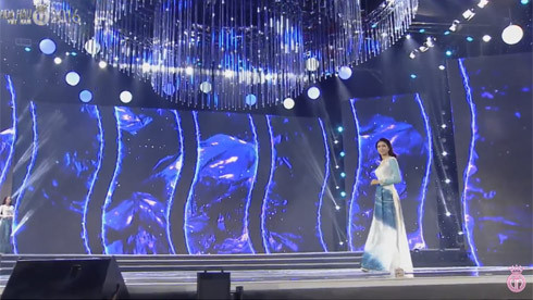 Tiếp đó, các thí sinh bước vào phần trình diễn trang phục áo dài của nhà thiết kế Ngô Nhật Huy