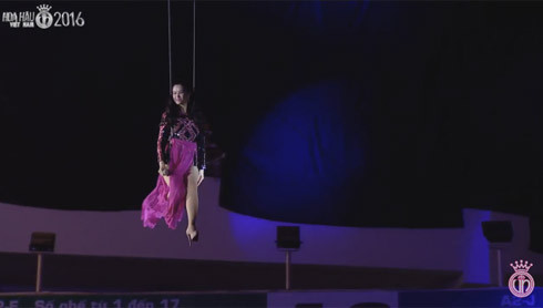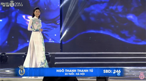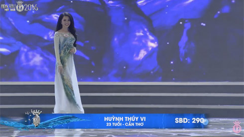 Là thí sinh đầu tiên bước trên sân khấu trong trang phục áo dài, cô gái đến từ Cần Thơ Huỳnh Thúy Vi đã bị vấp suýt ngã, nhưng ngay lập tức, người đẹp này đã đứng dậy, mỉm cười và tiếp tục phần trình diễn của mình
