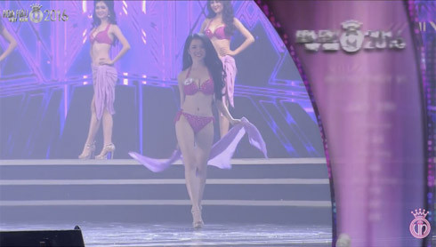 Xen giữa phần thi áo tắm là màn biểu diễn ca khúc "Thế giới không có anh" và "Big girl don't cry" của Tóc Tiên