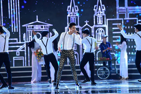 Ca sĩ Noo Phước Thịnh mở màn đêm chung kết Hoa hậu Việt Nam 2016 với ca khúc "Sài Gòn đẹp lắm" cùng màn đồng diễn của 30 thí sinh trong trang phục váy ngắn quyến rũ