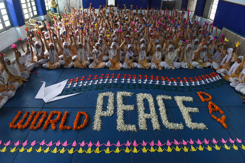 Trẻ em tham gia hoạt động kỷ niệm Ngày Hòa bình quốc tế do LHQ phát động, tại Ahmedabad (Ấn Độ) ngày 21-9-2017
