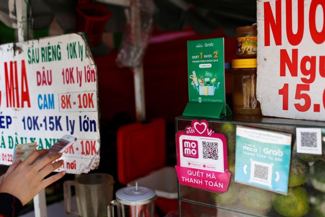 Logo của các ví điện tử “chen chúc” nhau tại một quầy bán rong