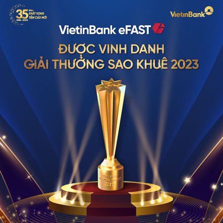 Luôn tiên phong ứng dụng ngân hàng số, VietinBank không ngừng nghiên cứu, cải tiến với mục đích đưa khách hàng cảm nhận những tiện ích khi sử dụng sản phẩm dịch vụ tài chính, ngân hàng như một thành tố trong cả hệ sinh thái. Được vinh danh tại Sao Khuê năm 2023 là nguồn động lực to lớn để VietinBank eFAST tiếp tục nâng cao, cải tiến đáp ứng mọi nhu cầu của khách hàng. Đồng thời, VietinBank cam kết sẵn sàng đồng hành cùng doanh nghiệp trên con đường chinh phục thành công.