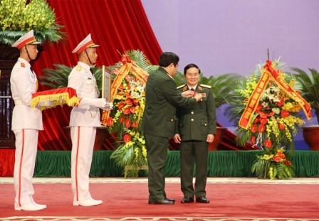 Thừa ủy quyền của Chủ tịch nước, Đại tướng Phùng Quang Thanh, Ủy viên Bộ Chính trị, Bộ trưởng Bộ Quốc phòng, gắn Huân chương Lao động hạng Ba tặng Thiếu tướng Lê Công, Tổng Giám đốc MB tháng 11-2014