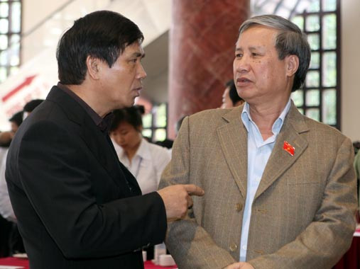 Các ĐBQH trao đổi bên lề phiên họp sáng 16-11