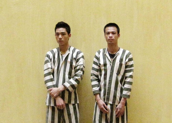 Doanh và Quân tại cơ quan công an (từ trái sang)