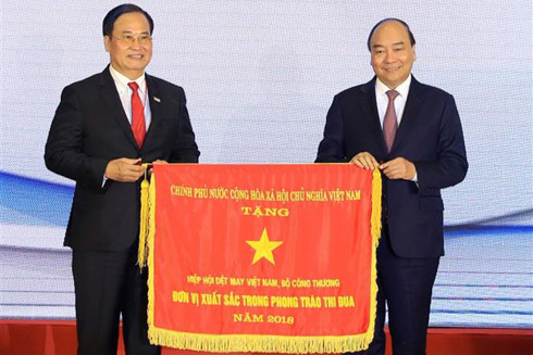 Thủ tướng Nguyễn Xuân Phúc tặng Cờ Thi đua của Chính phủ cho Hiệp hội dệt may Việt Nam