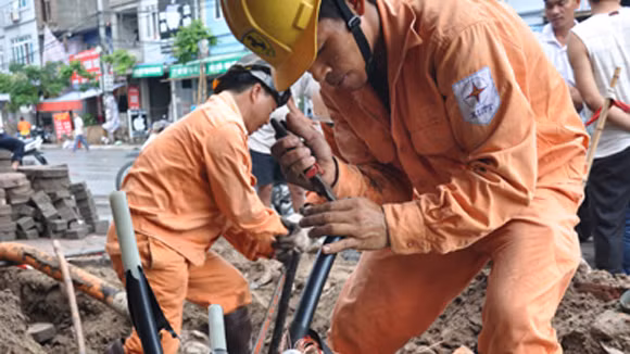 Công nhân ngành điện lực khẩn trương khắc phục sự cố