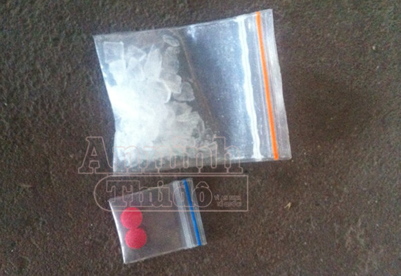 Trong lúc kiểm tra, tổ công tác phát hiện túi quần trước bên trái của nam thanh niên điều khiển xe có 1 túi nilông, bên trong chứa các tinh thể màu trắng nghi là ma túy đá, túi trước bên phải có 1 túi nilông khác chứa hai viên thuốc dạng nén màu hồng, nghi là ma túy tổng hợp. Đối tượng ngồi sau còn cầm trên tay một bộ cóng, được sử dụng để “chơi” ma túy vẫn còn ấm.