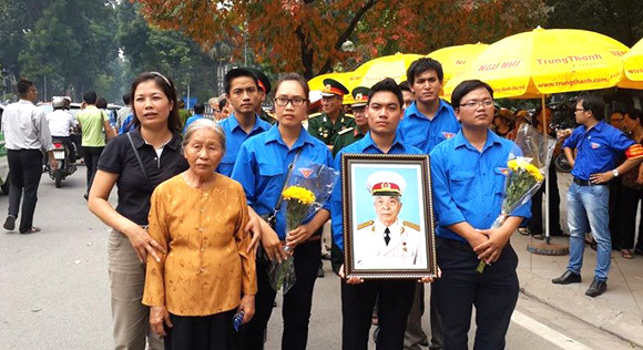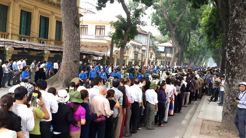 Sáng nay 10-10, những đoàn người xếp hàng kéo dài hàng cây số để mong được đến lượt vào viếng Đại tướng Võ Nguyên Giáp.