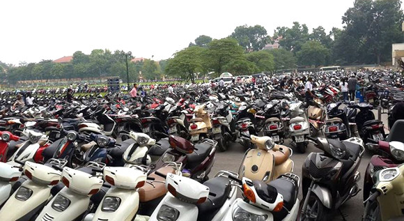 Toàn bộ khu vực trông xe miễn phí cho khách đến viếng Đại tướng chật cứng
