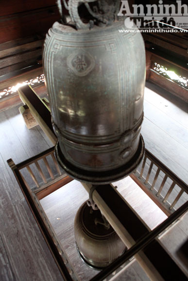 Bộ khung gác chuông làm bằng gỗ liên kết với nhau bằng mộng, nâng bổng 12 mái ngói với 12 đao loan uốn cong dáng vẻ thanh thoát, nhẹ nhàng.