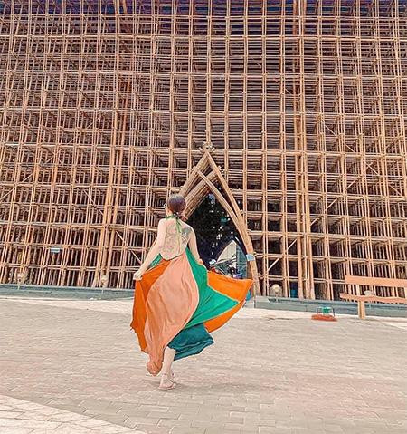 Vẻ đẹp độc đáo có 1-0-2 của tre, kết hợp cùng ánh sáng rực rỡ mà thiên nhiên sắp đặt cho Phú Quốc sẽ giúp du khách có được những concept hình siêu lung linh. Hãy thử thả dáng ngay bên ngoài khuôn viên, hoặc nghiêng góc máy bắt trọn kiến trúc đỉnh cao phía bên trong công trình. Đừng quên diện trang phục sáng màu để thật nổi bật trên background thú vị này nhé!