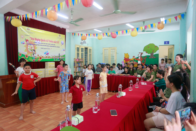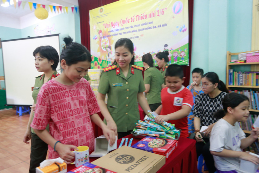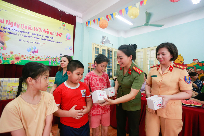 ANTD.VN - Với mong muốn chia sẻ yêu thương, giúp đỡ trẻ em có hoàn cảnh đặc biệt, hoàn cảnh khó khăn; ngày 1-6, Hội phụ nữ, Đoàn Thanh niên của Phòng Tham mưu CATP Hà Nội và Công an quận Đống Đa đã phối hợp tổ chức chương trình Vui ngày Quốc tế thiếu nhi 1-6 và tặng quà cho gần 60 em nhỏ đang được nuôi dưỡng tại Nhà nuôi dưỡng trẻ em Hữu Nghị Đống Đa (Đống Đa, Hà Nội).