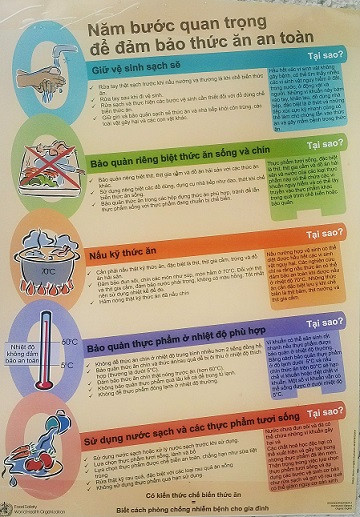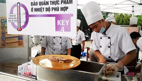 Các đại biểu đã được tham gia buổi trình diễn thực hành theo hướng dẫn “5 bước quan trọng để đảm bảo thức ăn an toàn” trong quy trình nấu ăn. Đây là 5 chìa khóa để có thực phẩm an toàn hơn, gồm: giữ vệ sinh sạch sẽ; bảo quản riêng biệt thực phẩm sống và chín; nấu kỹ thức ăn; bảo quản thực phẩm ở nhiệt độ phù hợp; sử dụng nước sạch và các thực phẩm tươi sống.