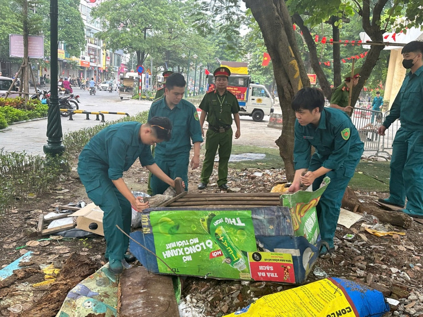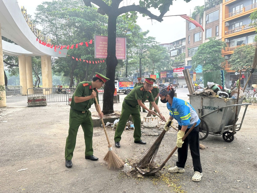 Đoàn Thanh niên CAP phối hợp cùng các lực lượng tiến hành dọn vệ sinh